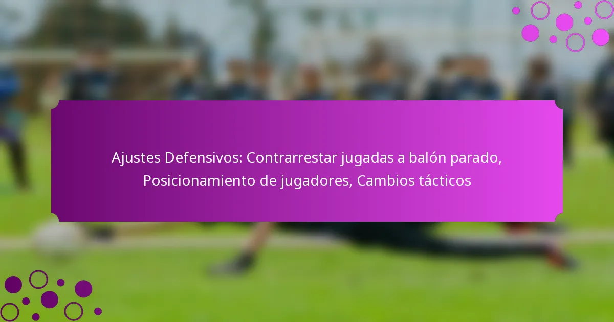 Los ajustes defensivos son esenciales para los equipos que buscan contrarrestar efectivamente las jugadas a balón parado y mejorar el rendimiento general. Al centrarse en la posición de los jugadores, entender los roles tácticos e implementar cambios estratégicos, los equipos pueden minimizar las oportunidades de gol y adaptarse a las estrategias ofensivas de sus oponentes. Estos ajustes no solo fortalecen la defensa, sino que también promueven una estructura de equipo cohesiva durante momentos críticos en un partido.